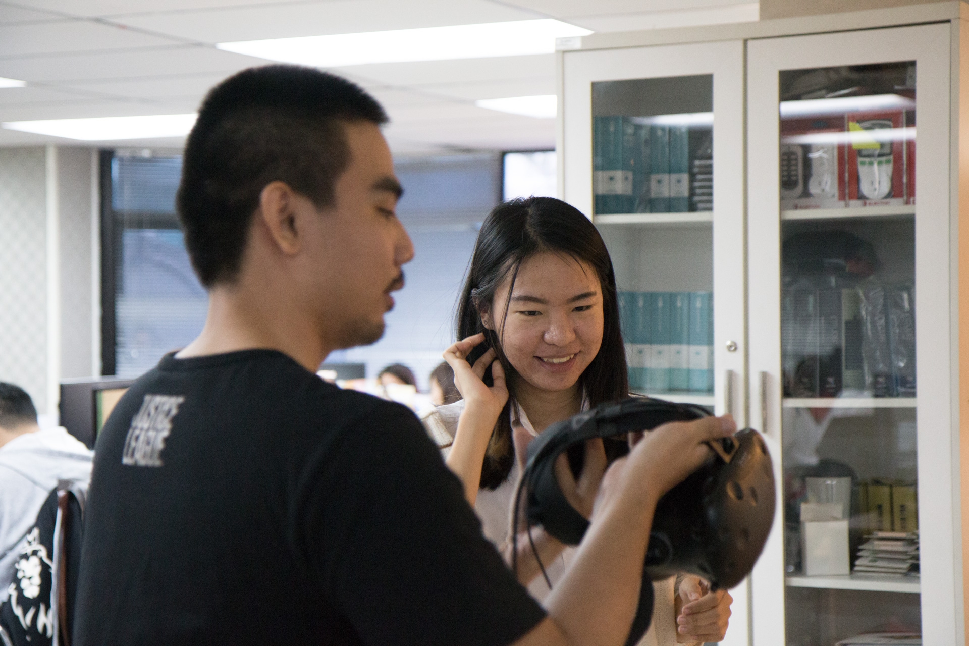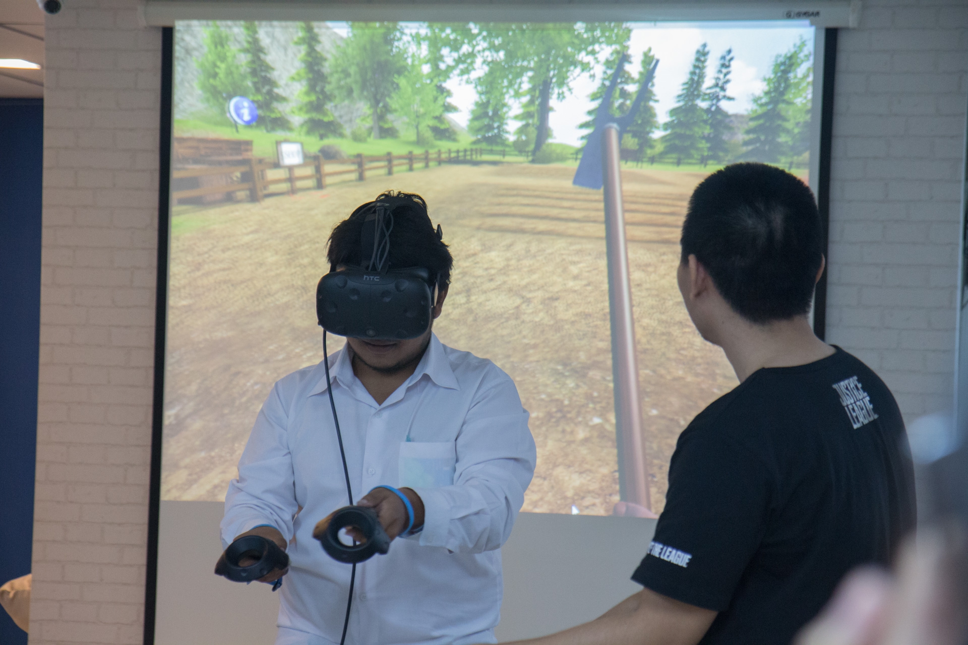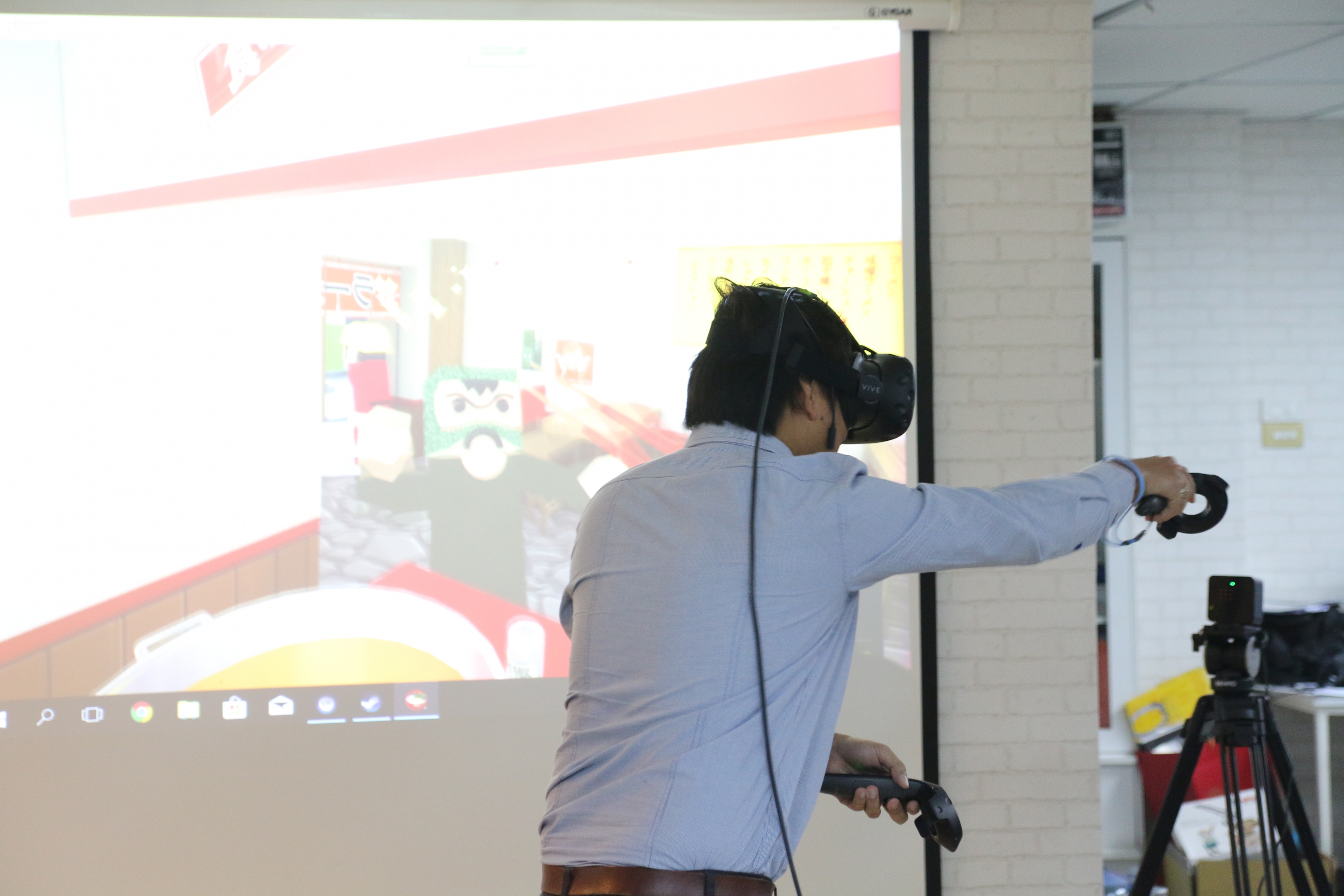 ต่อด้วย ช่วงคลายเครียด ที่ให้น้องนักศึกษาและคณะอาจารย์ทดสอบเล่นเกมส์แนวต่างๆ กับเครื่องเล่น VR (Virtual Reality)
