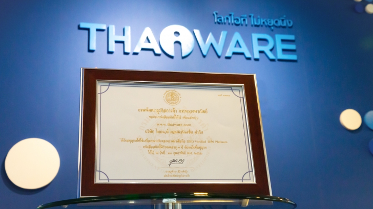 เมื่อเร็วๆ นี้ เว็บไซต์ไทยแวร์ ผู้ผลิตสื่อด้านไอที และจัดจำหน่ายสินค้าฮาร์ดแวร์ ซอฟต์แวร์ลิขสิทธิ์ ตอกย้ำความน่าเชื่อถือในการดำเนินธุรกิจไปอีกขั้น ด้วยการได้รับเครื่องหมายรับรองความน่าเชื่อถือ DBD Verified ระดับสูงสุด Platinum จากกรมพัฒนาธุรกิจการค้า กระทรวงพาณิชย์ เป็นรายแรกของไทย ซึ่งเครื่องหมายที่ได้รับมาในครั้งนี้ ถือเป็นอีกหนึ่งความภูมิใจของเว็บไซต์ไทยแวร์ที่สะท้อนให้เห็นถึงความซื่อตรงและความโปร่งใสในการดำเนินธุรกิจ รวมถึงความมุ่งมั่นในการพัฒนาคุณภาพสินค้าและยกระดับการบริการอย่างไม่หยุดยั้ง เพื่อตอบสนองความต้องการของผู้บริโภค