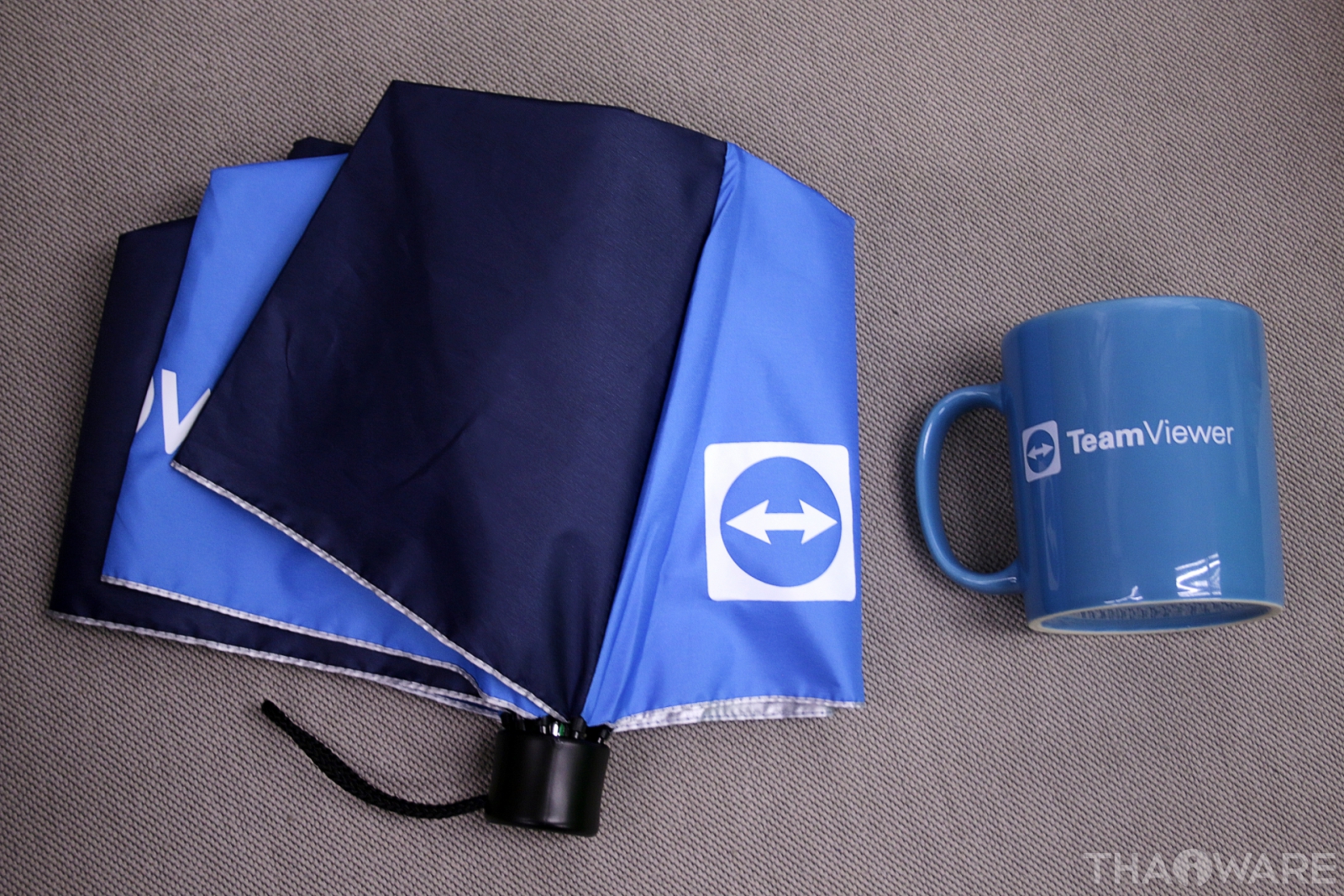 ร่ม และแก้วมัค TeamViewer เป็นของที่ระลึกที่มอบให้ผู้เข้าร่วมงาน